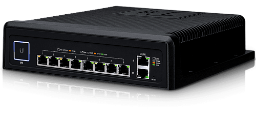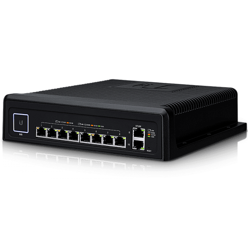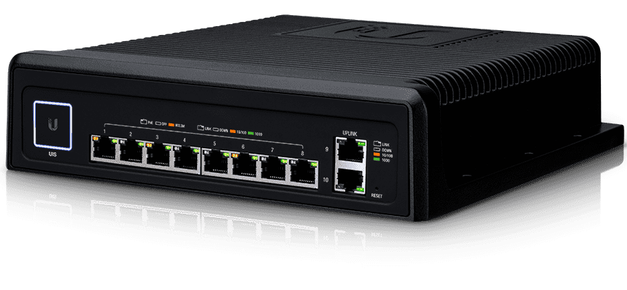 UniFi Switch Industrial представляет собой управляемый коммутатор серии UniFi, имеющий на борту десять гигабитных портов 8p8c (RG 45). Восемь из них способны раздавать питание PoE, при этом имеется функция автоматического распознавания типа подключения, включая поддержку новейшего стандарта PoE++ 802.3bt, а два других предназначены для восходящих\нисходящих соединений. Максимальная мощность подключенных абонентских устройств может достигать 60 ватт.