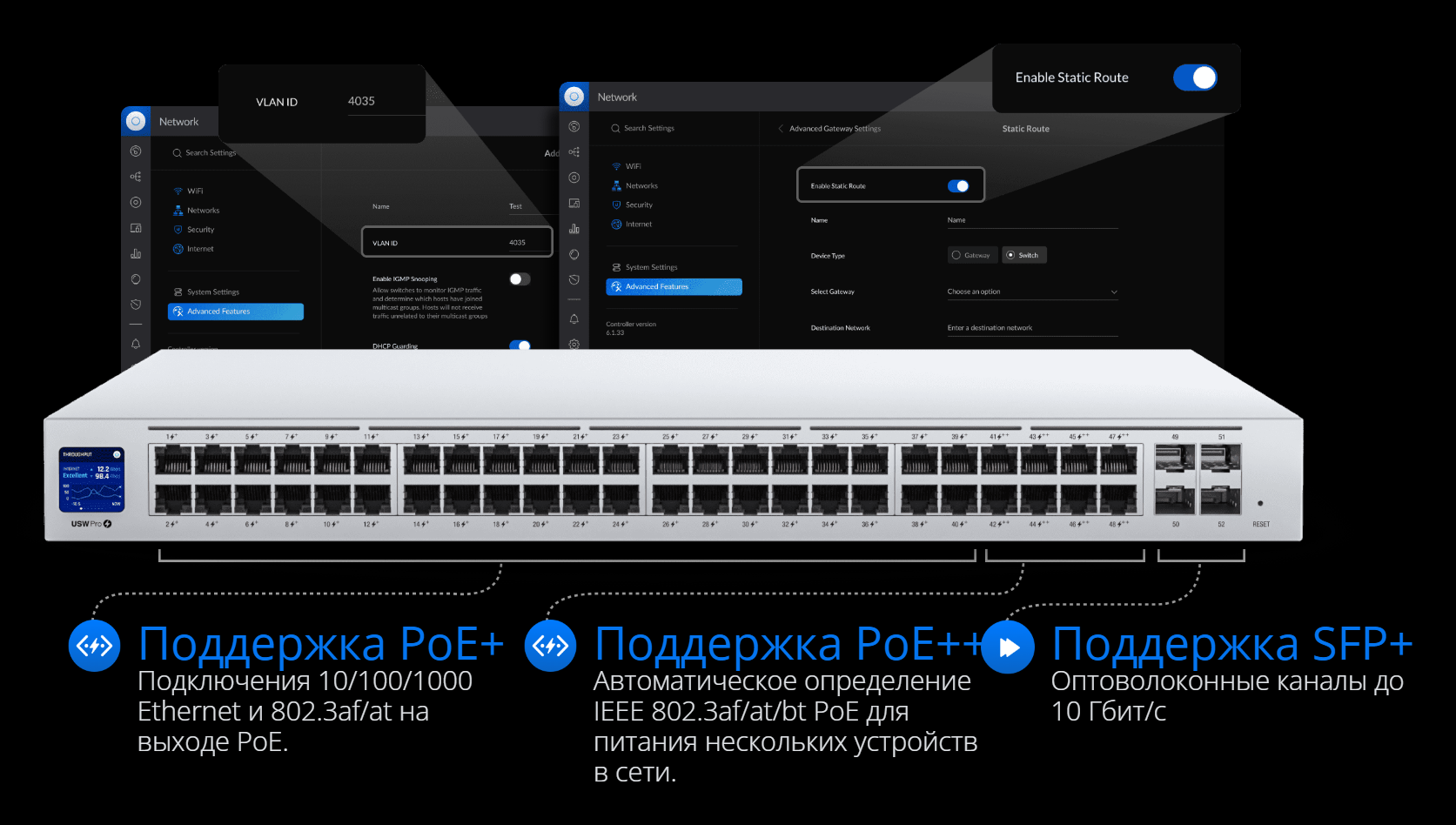 Pro 48 PoE USW-Pro-48-POE — это профессиональный коммутатор, обладающий широкими возможностями по коммутации и питанию гигабитной сети.