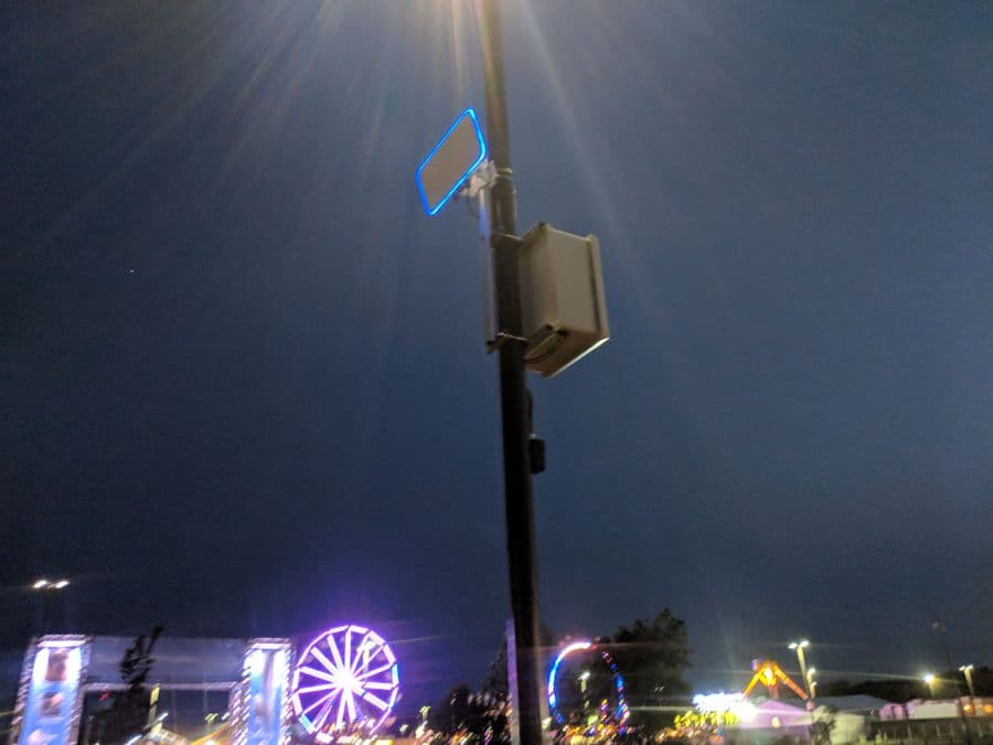 Точки доступа мы устанавливали на вершинах осветительных колонн и мачт. Это было сделано с целью минимизации сектора обслуживание каждого устройства - UniFi BaseStation XG направляли сигнал сверху вниз, создавая нужное нам пятно покрытия, и минимизируя влияние на соседние устройства. Так же, для уменьшения интерференции и взаимных помех мы максимально снижали мощность каждой точки доступа.