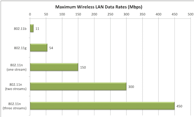 Далее максимальная ширина канала увеличилась уже до 40 Мгц, таким образом обеспечив скорость передачи данных в 150 мбит/Сек.