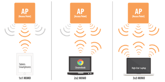 Однако, успех WiF 802.11 AC был несомненным, тем более что при своих 8 потоках MIMO теоретический максимум стандарта достигал почти 7 Гбит/Сек! Кроме того здесь был внедрена технология MU-MIMO – или мультиплексирования каналов. В этой схеме WiFi точка доступа разбивает канал на подканалы, и начинает одновременный обмен данными с несколькими абонентами, что значительно оптимизировало работу в высоконагруженных сетях, позволяя решать проблемы «медленного клиента» и значительно эффективнее использовать возможности WiFi Точки доступа. Правда в рамках ревизии WiF 802.11 AC MU-MIMO работало только в нисходящем направлении.