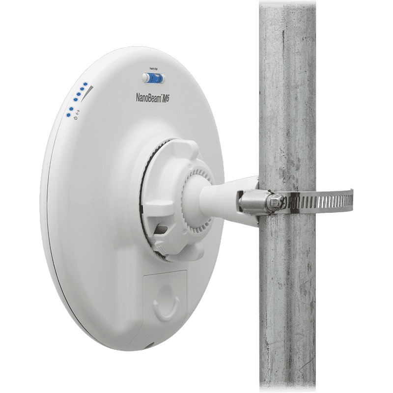 Nanobeam M5-19 — типичный представитель линейки оборудования. При высокой мощности (порядка 400мВт) и коэффициенте усиления антенны в 19dBi, точка доступа имеет весьма небольшой вес и очень компактна. Работает устройство в частотном диапазоне 5GHz, поддерживаются стандарты 802.11an. Использованная схема MIMO 2×2 значительно увеличивает пропускную способность точки доступа. Nanobeam M5-19 получил мощный процессор Atheros MIPS 74KC с частотой 560 мегагерц, а также 64 мегабайта оперативной памяти, что вдвое больше, нежели у устройств серии Nanobridge M. По традиции, комплектация включает в себя PoE-инжектор для подачи питания через Ethernet-порт 10\100Mbps, расположенный на облучателе. Однако, наличие радиопрозрачного колпака, имеющего защитное предназначение, стало инновационным для устройств компании Ubiquiti Networks. Он сможет уберечь от образования наледи в холодное время года, снизит парусность при ветре. Претерпело изменения и крепление Nanobeam M5-19, отличающееся своей подвижностью. Новая разработка инженеров даст возможность тонко калибровать устройство для достижения максимальной эффективности соединения.