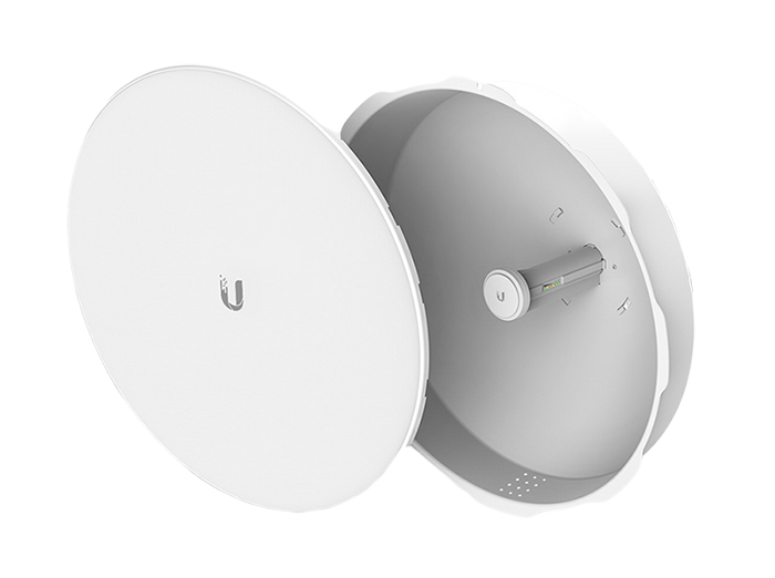 Радиочасть устройства выполнена по схеме InnerFeed и не имеет соединительного фидерного кабеля между передатчиком и облучателем антенны, что положительно сказывается на работе всего радиотракта. Мощность сигнала, которую обеспечивает передатчик PowerBeam 5AC-300-ISO, достигает 25 dBi, при этом коэффициент усиления штатной параболической антенны диаметром 300 мм с интегрированным рупорным элементом составляет 22 dBi, что позволяет устанавливать соединение на расстоянии до 20 км при использовании однотипных устройств в условиях прямой видимости.
