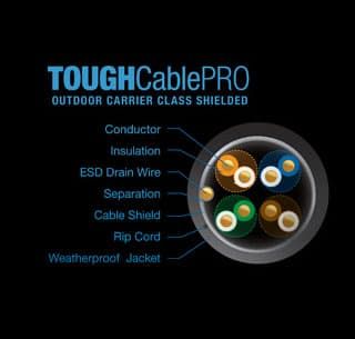 Ubiquiti TOUGHCable Pro — витая пара, специально разработанная инженерами Ubiquiti для применения вместе с телекоммуникационным оборудованием для создания беспроводных мостов и PtmP-сетей. Помимо качественной передачи данных Ubiquiti TOUGHCable Pro обеспечивает исключительную защиту точки доступа и антенны от любых электрических разрядов.