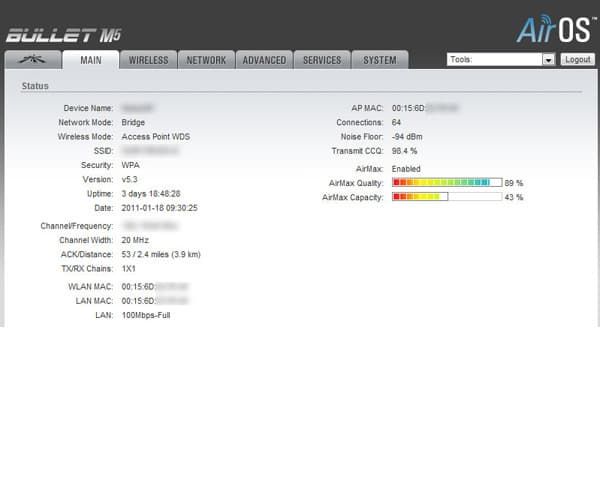 Точка доступа работает в частотном диапазоне 5 ГГц, что особенно ценно для мест, где сильно зашумлен стандартный диапазон 2.4 ГГц. Мощность радиочасти Bullet M5 HP составляет 600 мВт, что достаточно для покрытия сигналом средних по размерам территорий.
