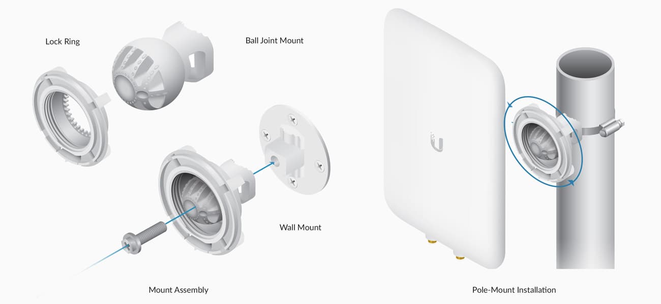 UniFi Антенна — это оригинальный модуль, созданный специально для точки доступа UniFi MESH. Ширина диаграммы направленности излучателя зависит от рабочего диапазона: 45 градусов для 5 ГГц и 90 градусов для 2,4 ГГц.